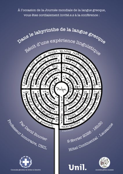 Dans le labyrinthe de la langue grecque. Récit d’une expérience linguistique», le 9 février 2026, la Conférence de David Bouvier, Prof. Honoraire UNIL